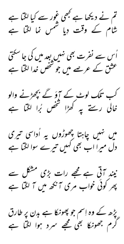 تم نے دیکھا ہے کبھی غور سے کیا لگتا ہے – محمد طارق عزیز کی غزل admin جون 9, 2021 محمد طارق عزیز تبصرہ کریں 403 ویوز غزل شئیر کریں Facebook Twitter Stumbleupon LinkedIn Pinterest